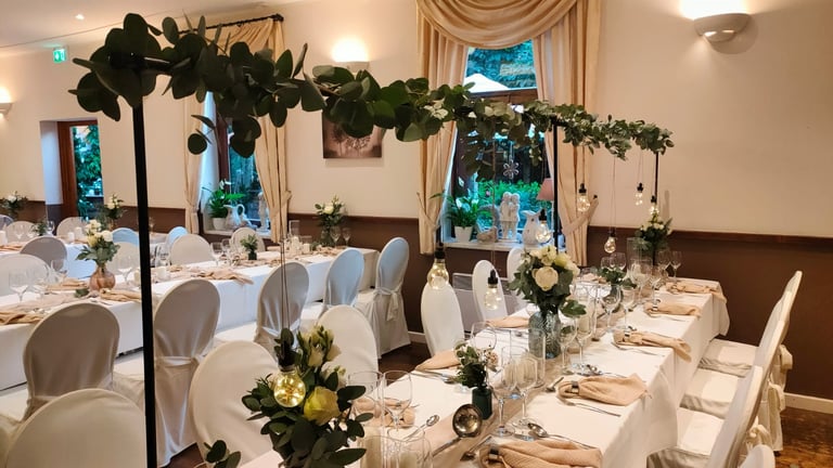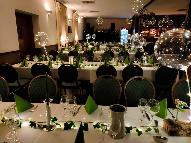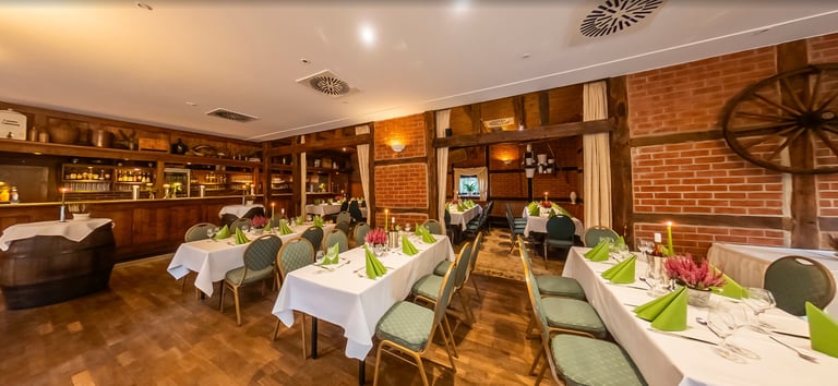 Tradition mit Charme: Unser alter Saal versprüht urige Gemütlichkeit und ist wie gemacht für gesellige Stunden in historischem Ambiente.